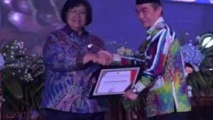 Pada acara tersebut, Menteri KLHK Dr.Ir. Siti Nurbaya, M.Si menyerahkan secara langsung Penganugerahan Penghargaan pada Ketua Forum DAS Provinsi Babel, Ir. Fadhillah Sobri, St.MTeng.