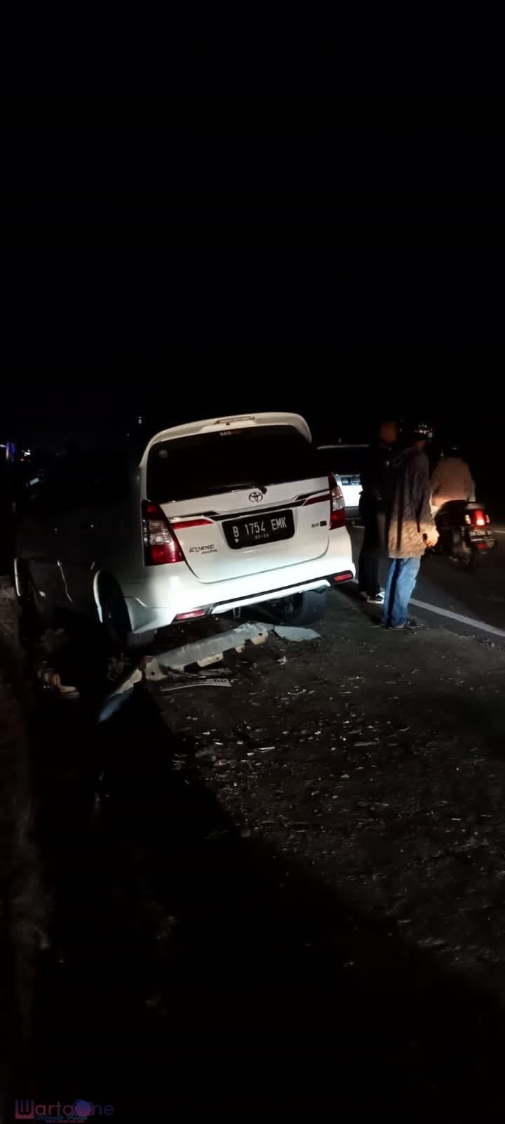 3 (Tiga) kendaraan tersebut terlihat rusak di bagian depan. Paling parah mobil Innova Putih sampai kap mobilnya penyok.